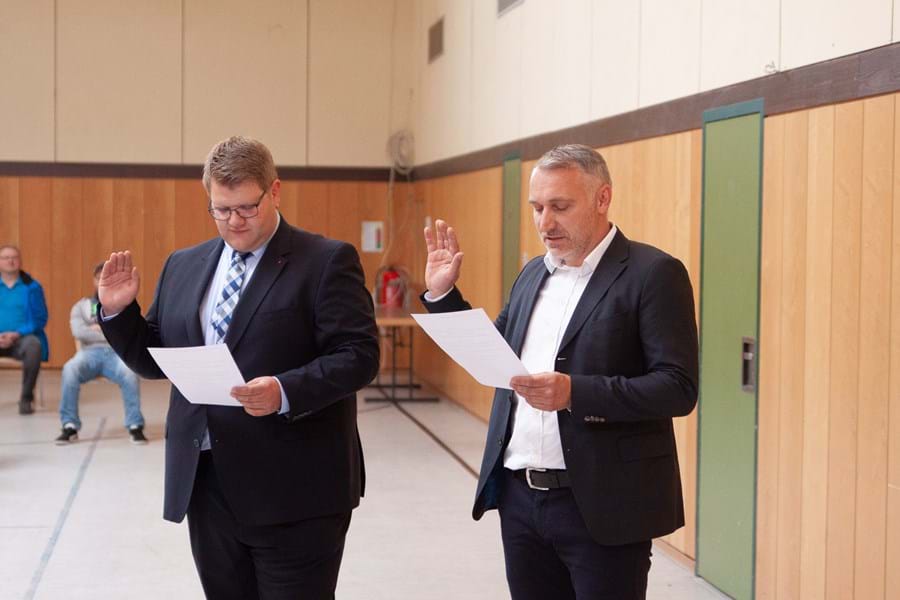 Heute findet die konstituierende Sitzung des Gemeinderats Gerach statt. Der neu gewählte Erste Bürgermeister Sascha Günther (CSU) wurde durch Gerhard Ellner als an Lebensjahren ältestes Gemeinderatsmitglied feierlich vereidigt. Ellner war bislang der Erste Bürgermeister und wurde für diese Wahlperiode erneut in den Gemeinderat gewählt.